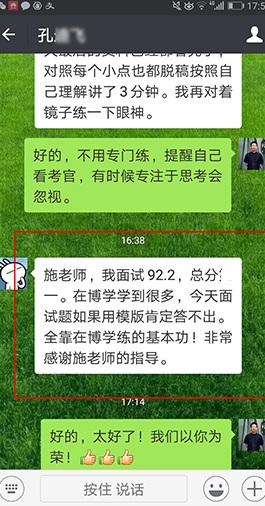 周老師善于因材施教,在大量的教學(xué)實(shí)踐中不斷總結(jié),創(chuàng)新面試培訓(xùn)“擊碎重塑法”7天快速提高體系,注重強(qiáng)化學(xué)員的自我認(rèn)知和對社會現(xiàn)實(shí)的認(rèn)知,從內(nèi)心深處改變學(xué)員面試心態(tài),重塑思維方式。他針對學(xué)員的不同性格特點(diǎn)和層次基礎(chǔ),設(shè)計(jì)不同的訓(xùn)練和評價(jià)方式,循序漸進(jìn)、諄諄善誘,從根本上解決“說不出、說不對、說不好”的普遍問題,使不少學(xué)員實(shí)現(xiàn)了從“難以啟齒”到“口若懸河”的轉(zhuǎn)變,被學(xué)員稱為“疑難雜癥專家”,備受推崇。 |