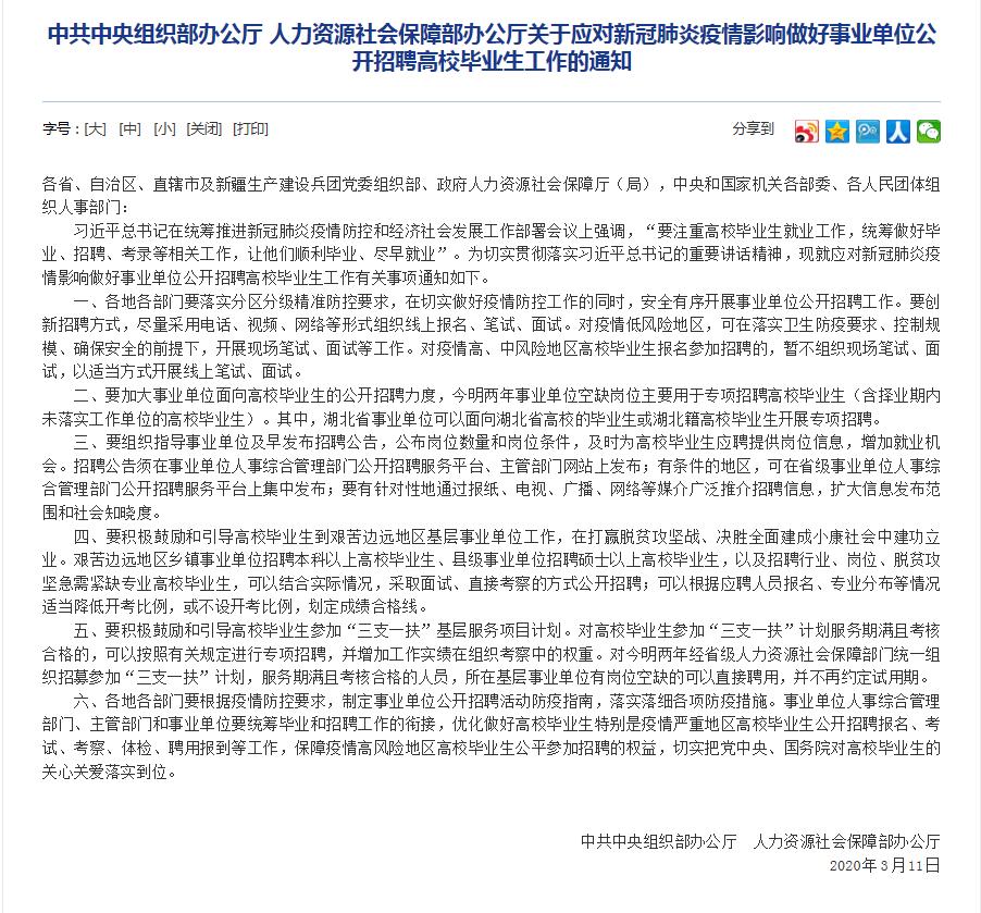 兩部委聯(lián)合發(fā)文:今明兩年事業(yè)單位空缺崗主招高校畢業(yè)生