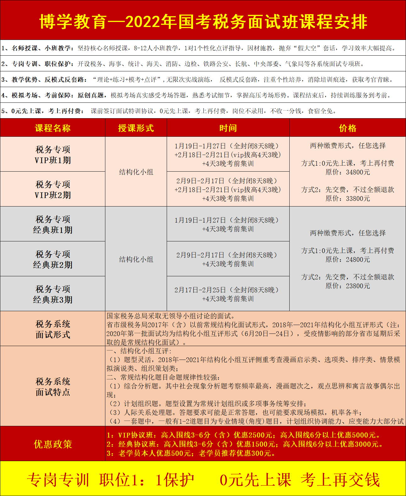 稅務(wù)局面試形式和特點(diǎn) 面試形式:國(guó)家稅務(wù)總局采取無(wú)領(lǐng)導(dǎo)小組討論的面試。 省市級(jí)稅務(wù)局2017年(含)以前常規(guī)結(jié)構(gòu)化面試形式,2018年—2021年結(jié)構(gòu)化小組互評(píng)形式(注:2020年第一批面試均為結(jié)構(gòu)化小組互評(píng)形式(6月20日—24日),受疫情影響的部分省市延期后采取的是常規(guī)結(jié)構(gòu)化面試)。 面試題量:結(jié)構(gòu)化小組互評(píng)每套題3道題目;常規(guī)結(jié)構(gòu)化面試每套題4道題目。 面試時(shí)間: (1)結(jié)構(gòu)化小組互評(píng):15分鐘場(chǎng)外備考看題,進(jìn)入考場(chǎng)后,按要求每人依次答題,每道題目3分鐘(注:個(gè)人答題時(shí)間:2020年—2021年均為3分鐘,2018年—2019年均為2分鐘);全部答題結(jié)束,按要求展開互評(píng),點(diǎn)評(píng)每人的時(shí)間為2分鐘;被點(diǎn)評(píng)人針對(duì)點(diǎn)評(píng)展開回應(yīng),時(shí)間2分鐘。 (2)常規(guī)結(jié)構(gòu)化面試:4道題目20分鐘,剩余3分鐘提醒時(shí)間。 (3)無(wú)領(lǐng)導(dǎo)討論:20分鐘場(chǎng)外備考看材料,然后進(jìn)入考場(chǎng)總時(shí)間85分鐘,首先個(gè)人陳述每人3分鐘,然后根據(jù)問題展開自由討論,最后推選一個(gè)代表作5分鐘陳述總結(jié)。 考查方式:看題+聽題相結(jié)合的 面試試題特點(diǎn) 第一、結(jié)構(gòu)化小組互評(píng): (1)題型靈活,2018年—2021年結(jié)構(gòu)化小組互評(píng)側(cè)重考查漫畫啟示類、選項(xiàng)類、排序類、情景模擬演說(shuō)類、組織策劃類; 第二、常規(guī)結(jié)構(gòu)化題目命題規(guī)律性較強(qiáng): (1)綜合分析題。其中社會(huì)現(xiàn)象分析題考察頻率最高,漫畫題次之,觀點(diǎn)思辨和寓言故事偶爾出現(xiàn); (2)計(jì)劃組織題。題型設(shè)置為常規(guī)計(jì)劃組織或多項(xiàng)事務(wù)統(tǒng)籌安排; (3)人際關(guān)系處理題。答題要求可能是正常答題,也可能要求現(xiàn)場(chǎng)模擬,機(jī)率各半; (4)一套題中,一般有1-2道題目為專業(yè)情境(角度)題目,計(jì)劃組織協(xié)調(diào)能力、應(yīng)變能力大部分試題為國(guó)稅專業(yè)情境題,綜合分析有少量的國(guó)稅專業(yè)角度題目,總體難度不大。
