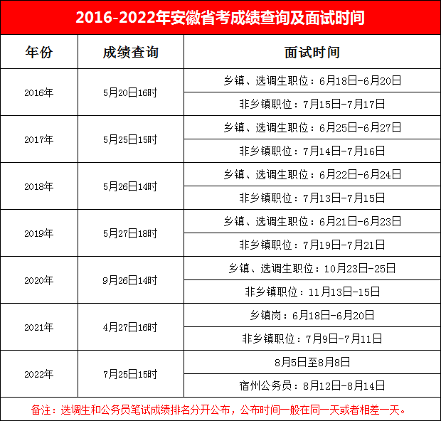 2016-2022年安徽省公務(wù)員成績查詢及面試時間匯總