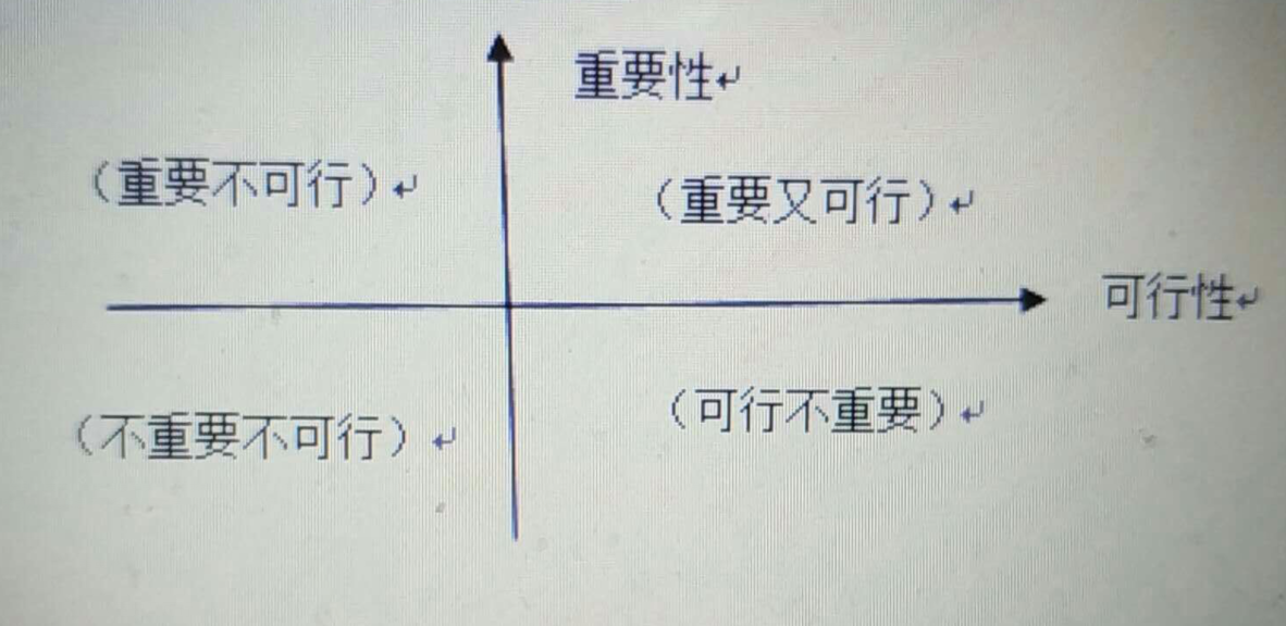 將題目中的五個選項和自己討論出來的幾個選項進行同類項合并之后,按照重要性可行性的標準填入這個象限,每個象限不能超過三個意見。